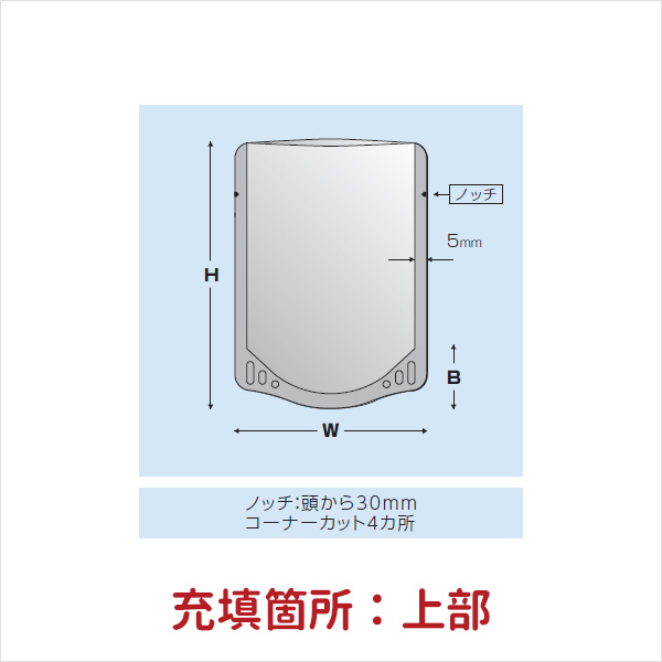 | 仕様 | ■5mmシール ■コーナーカット ■ノッチ付 ■レトルト殺菌(130℃ 30分) |